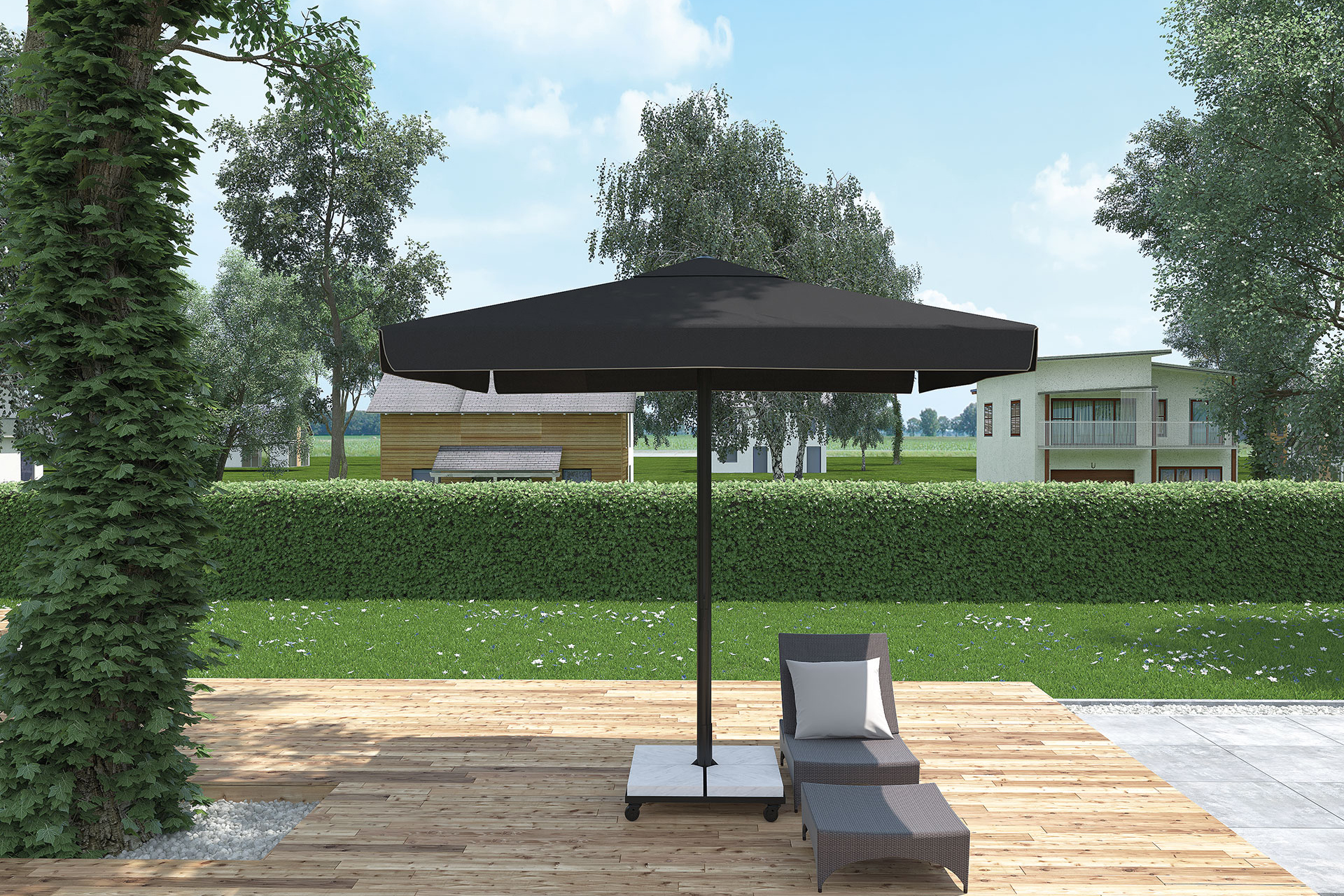 When you browse through so many technological shading systems, we seem to hear you say where that umbrella system is as we know it, here it is. Umbrellas, which can also be used manually with vertical or inclined profile options in square and round forms, are ideal for covering your large outdoor living area.