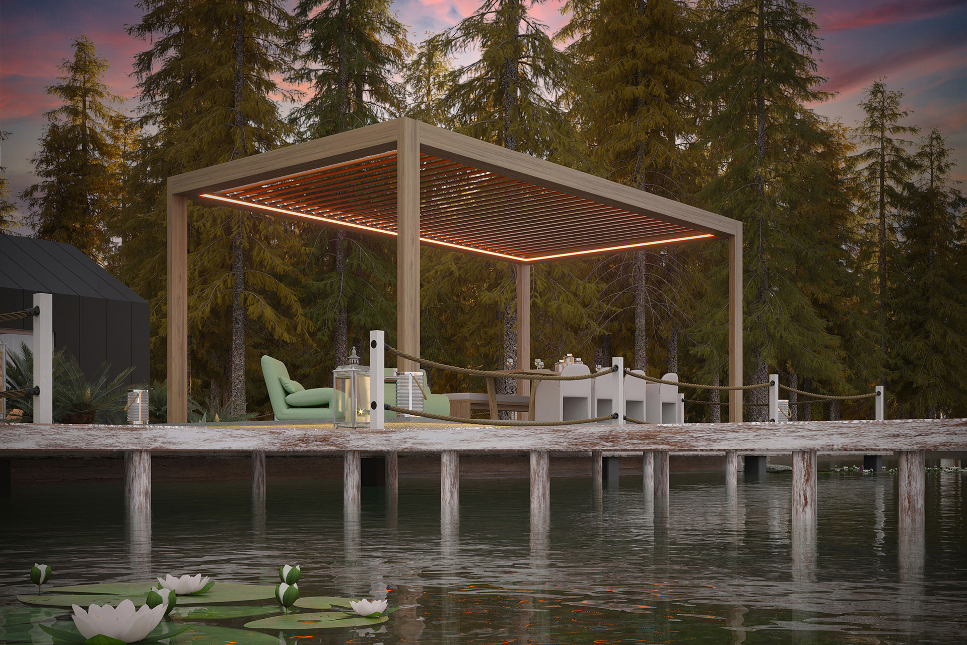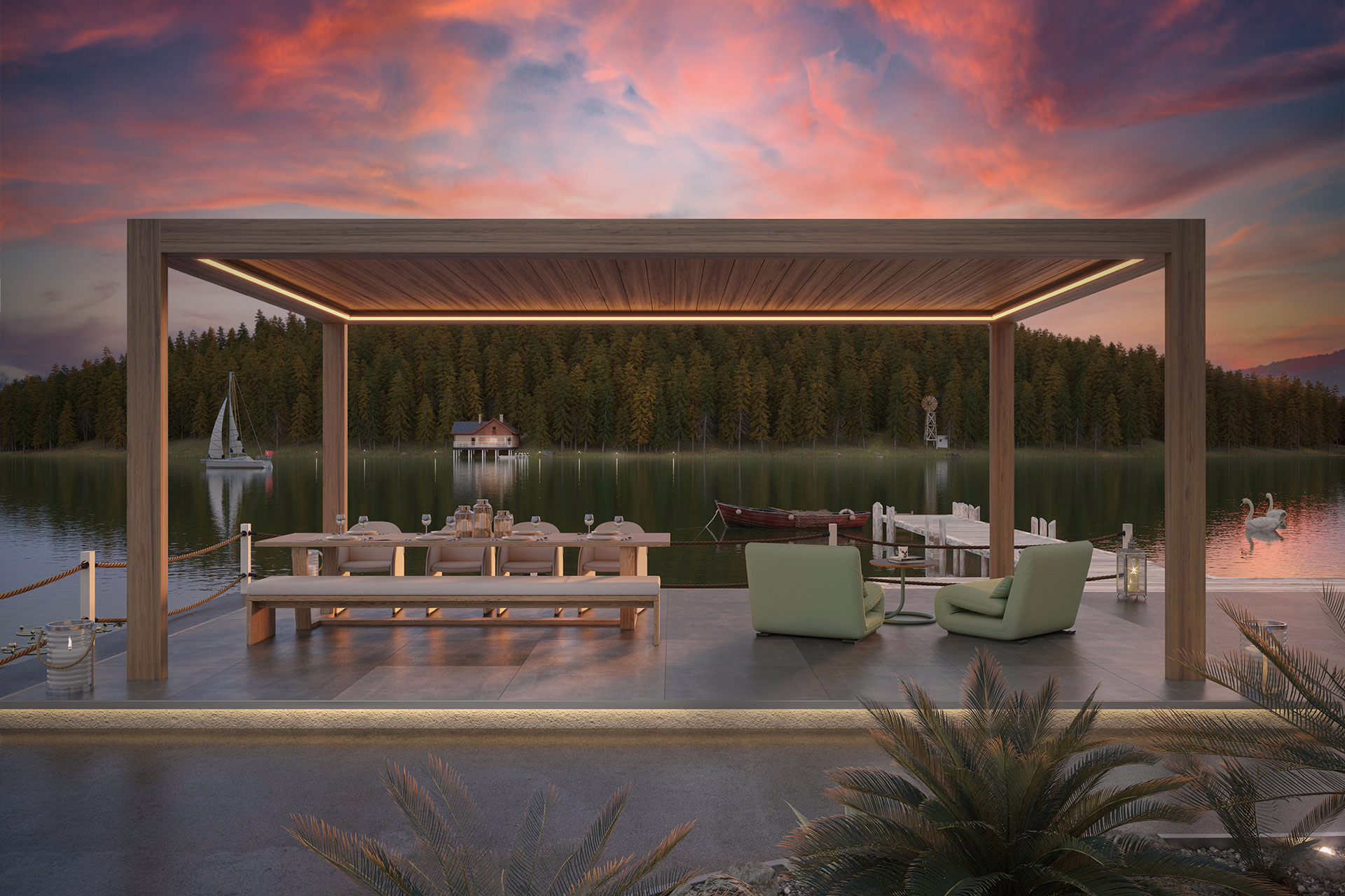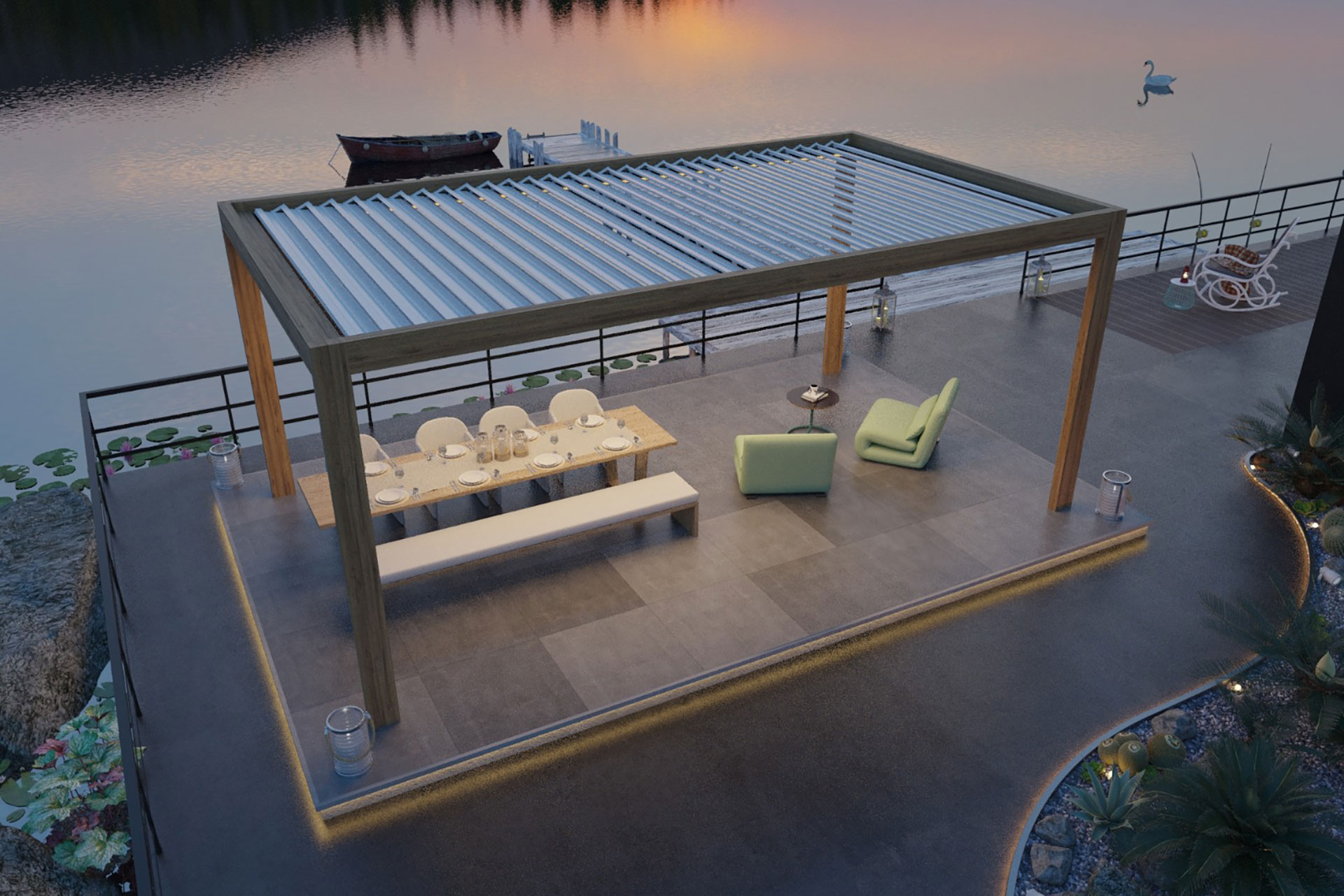 Thanks to its specially developed bulbs, it gives a softer light that does not illuminate the applied environment without losing any of its heating performance. Bioclimatic Pergolas, Pergolas, Tailor-Made and Awning, Blind & Parasol systems are easily applied, creating a dim environment resembling candlelight.
