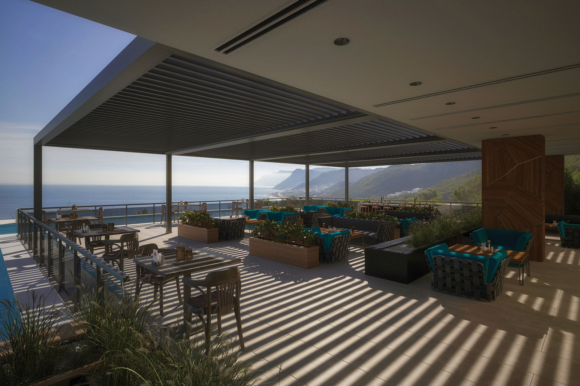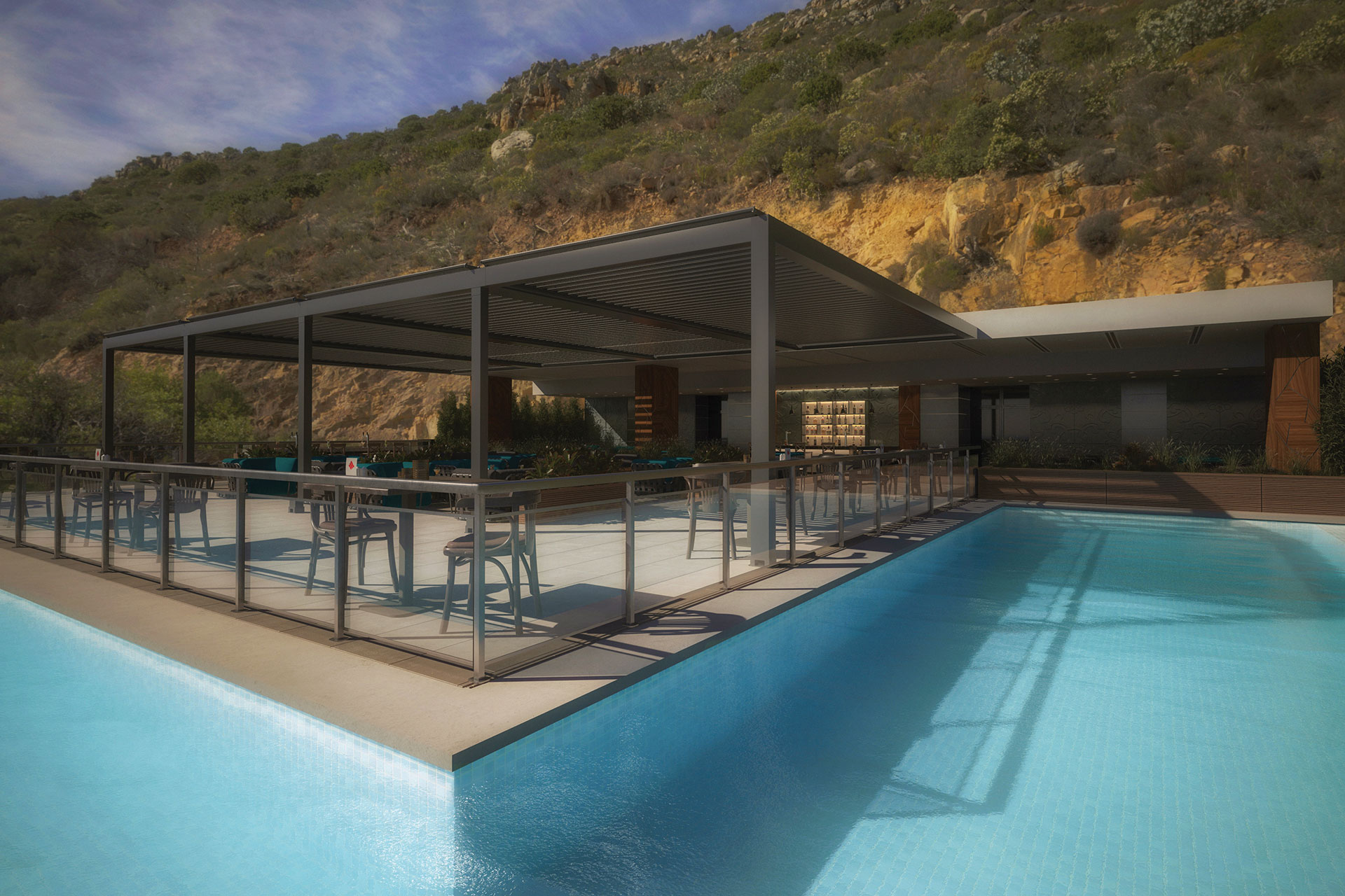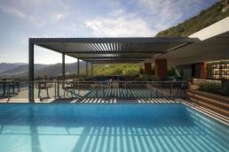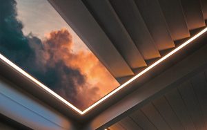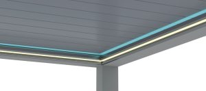 In the B Cube family of the pergola system, B Cube Space stands out with its system structure that is mounted on a flat area and supported by carrier pillars from the front. If you have a large area in outdoor design, the B Cube Space model is for you. It will be possible to transform your private living-space into a visual light feast thanks to the ambient lighting (RGB), while supporting it with front carrier pillars provides an extra safe outdoor use. It is not impossible to experience 3 different moods under the roof of the B Cube Space pergola, where 3 different light systems can be used at the same time. The model, in which the rotating panel structure can be adjusted from zero degrees to 120 degrees, will also save you time with its ease of use.